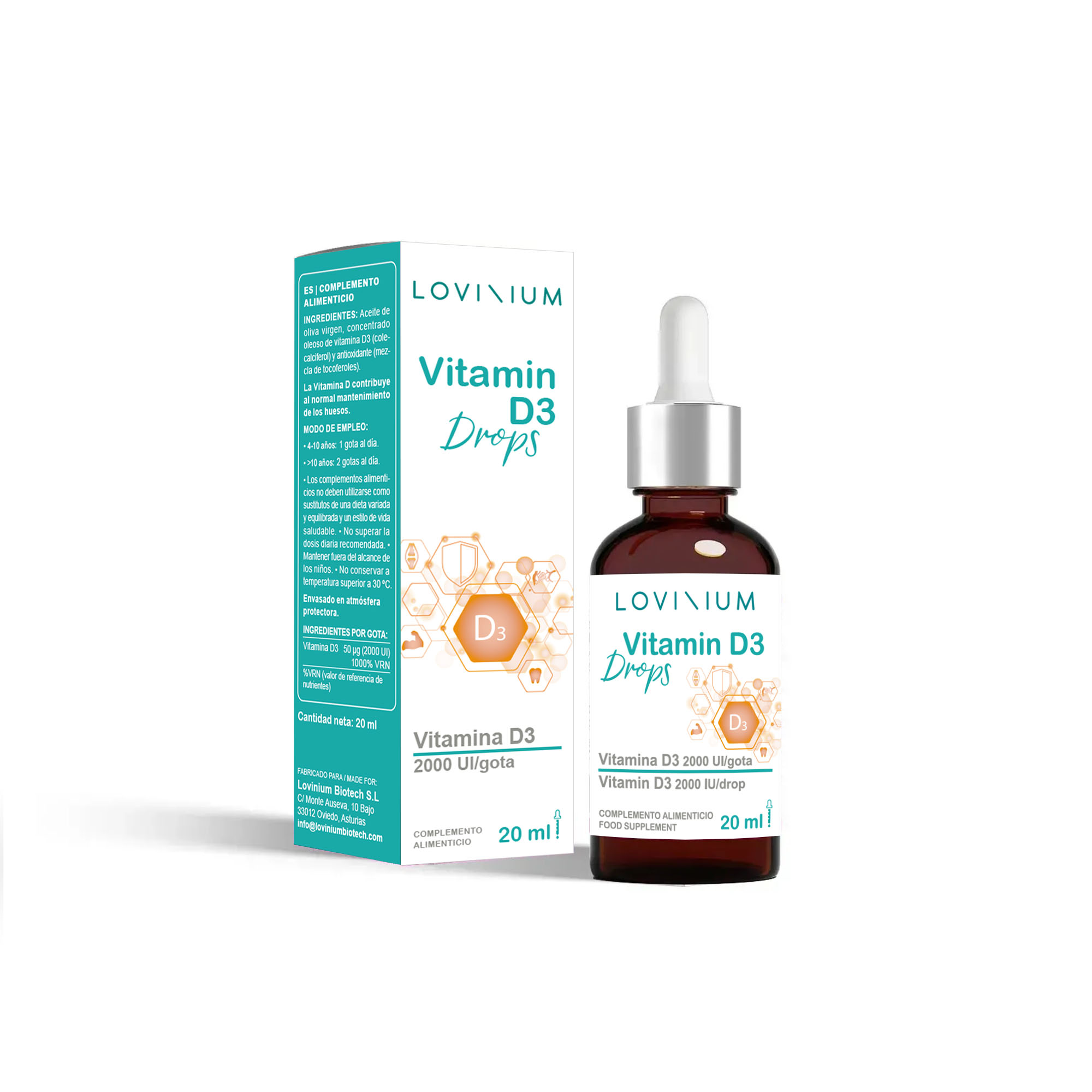 La vitamina D3 nos ayuda contribuyendo a la absorción y uso normal de calcio y fósforo en el organismo, apoya la formación adecuada del hueso y el mantenimiento de una función muscular normal. La Vitamina D contribuye al normal mantenimiento de los huesos. Asimismo, ayuda en el funcionamiento normal de nuestras defensas.